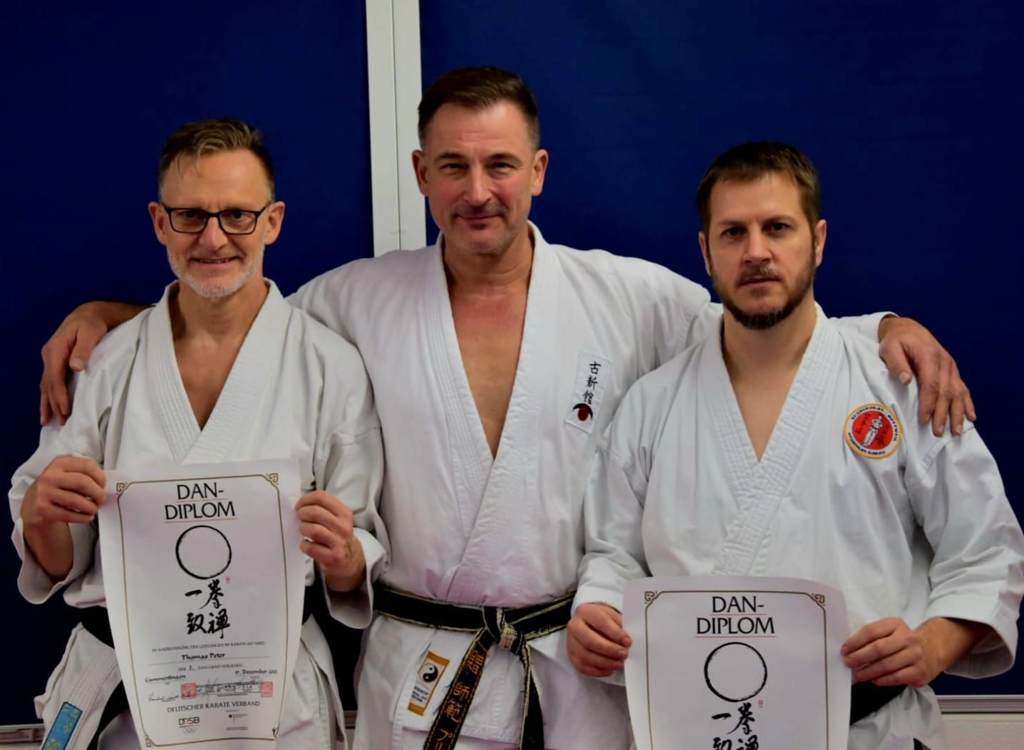 Die Prüfung wurde vom Prüfungskomittee Hans Ruff (8.Dan, Karate-Dojo Gammertingen), Sven Mlejnek (6.Dan, Bushidokan Rottweil) und Damiano Curzio (5.Dan, Karate-Dojo Shintaikan Villingen) geleitet.